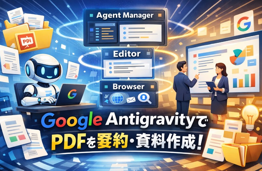 今回は、そんなGoogle Antigravityを使って「フォルダ内のPDFを要約する」「その内容を資料構成に落とし込む」という実務的な使い方を、初心者にもわかるように整理します。