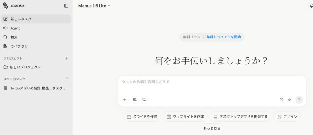 初めてManusを使う場合、いきなり複雑な業務を任せるより、まずは軽いタスクから始めるのがおすすめです。
