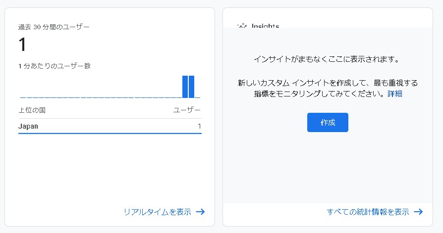 ホームの右の方を見ると、「インサイトがまもなくここに表示されます。」という場所があるので、作成ボタンから作成します。