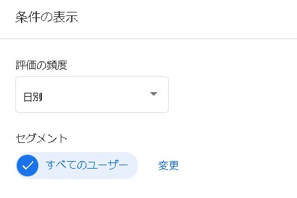 ○○以上、○○以下、異常値があります、など選択ができます。例えば、「7日間の合計ユーザー数」など。