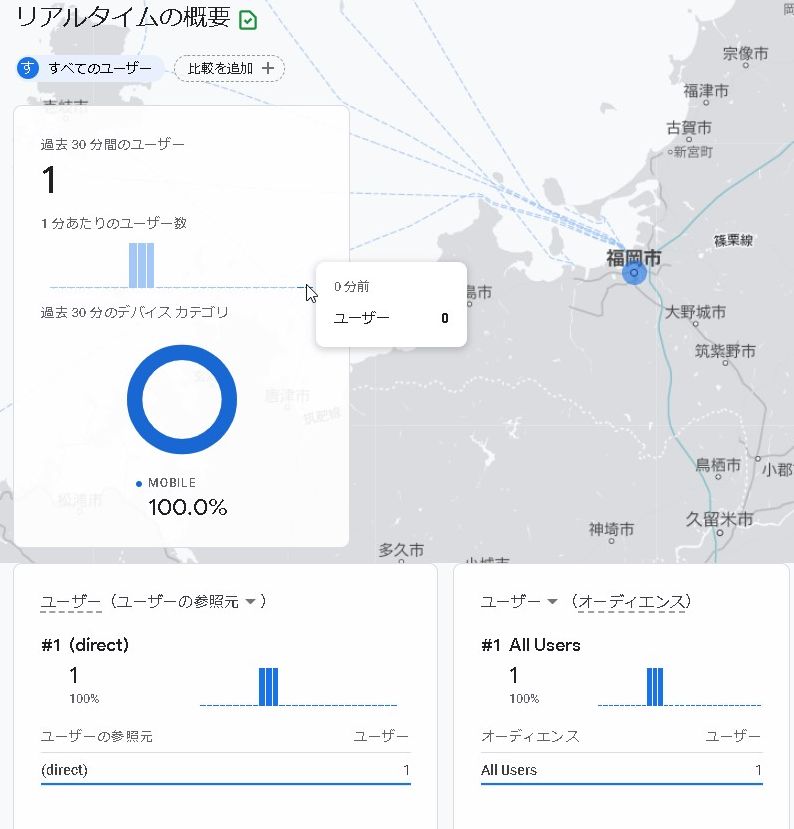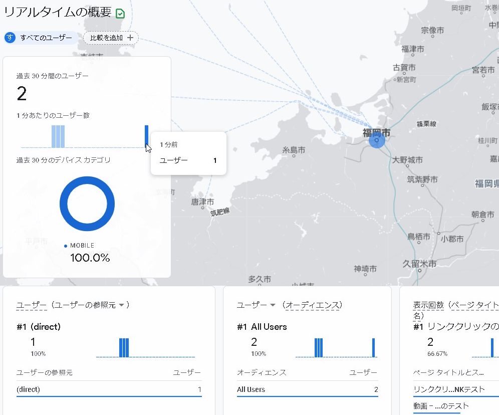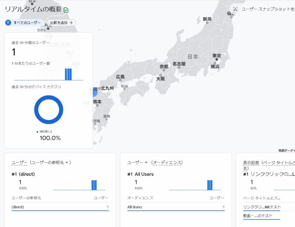 Googleアナリティクスを見ると、リアルタイムで計測されています・・・!