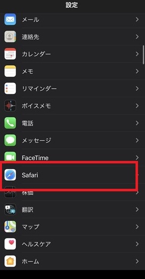 アプリをインストールしたら、設定から「Safari」を開きます。