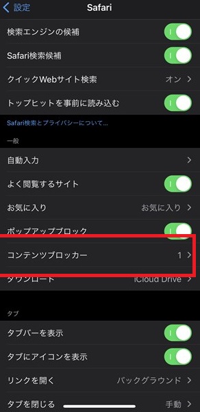 そうすると「コンテンツブロッカー」というメニューがあるので開きます。