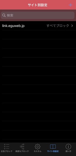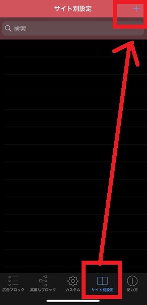 「サイト別設定」を開いたら、右上の「+」を押してサイトドメインを追加します。