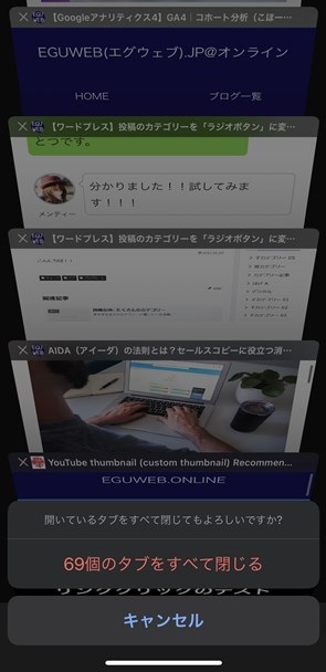 アプリで開いているタブをすべて閉じる