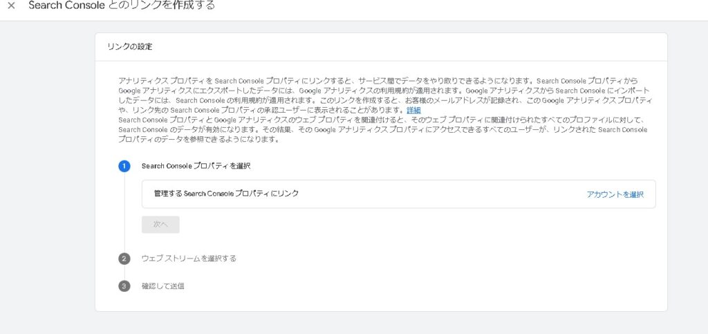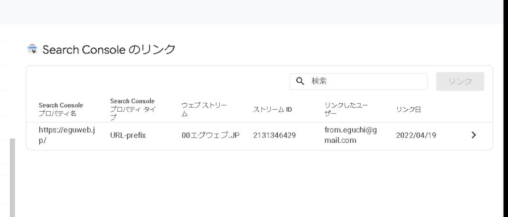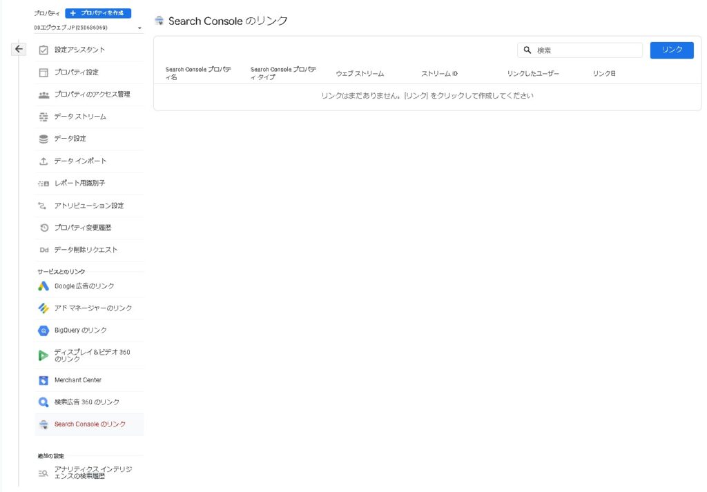「Search Console のリンク」の右側にある「リンク」をクリックします。