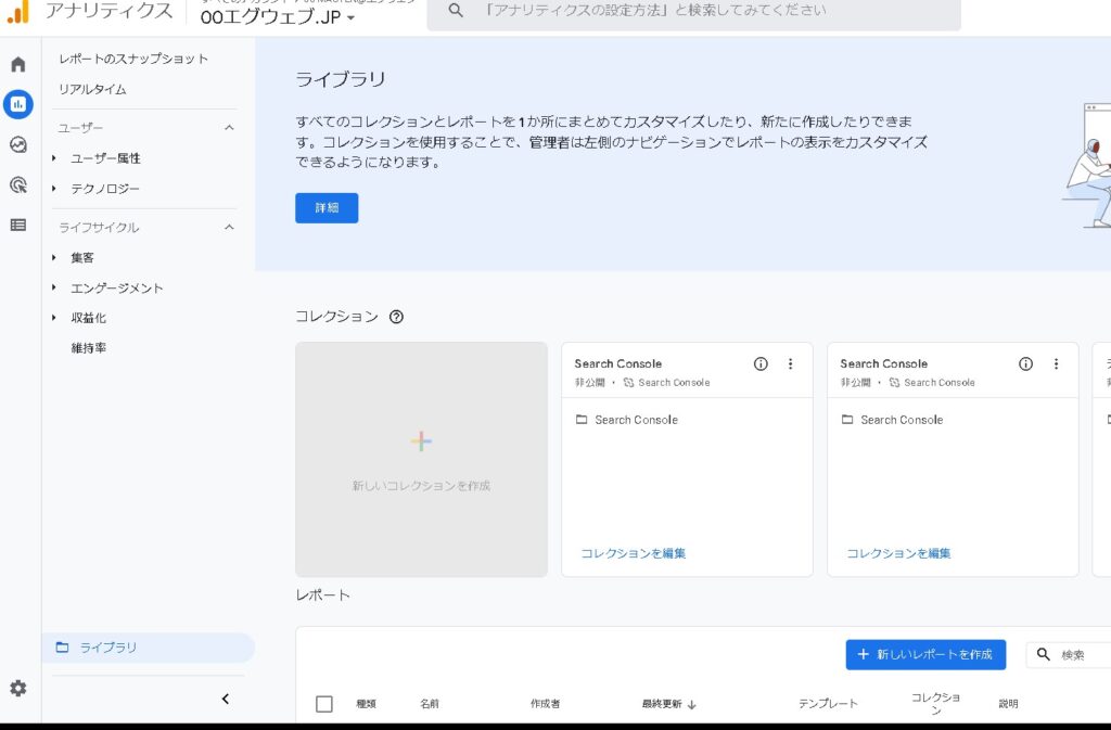 「ライブラリ」を使ってSearch Consoleに「クエリ」「Googleオーガニック検索レポート」を入れると、検索キーワードのデータが表示されるようになります。