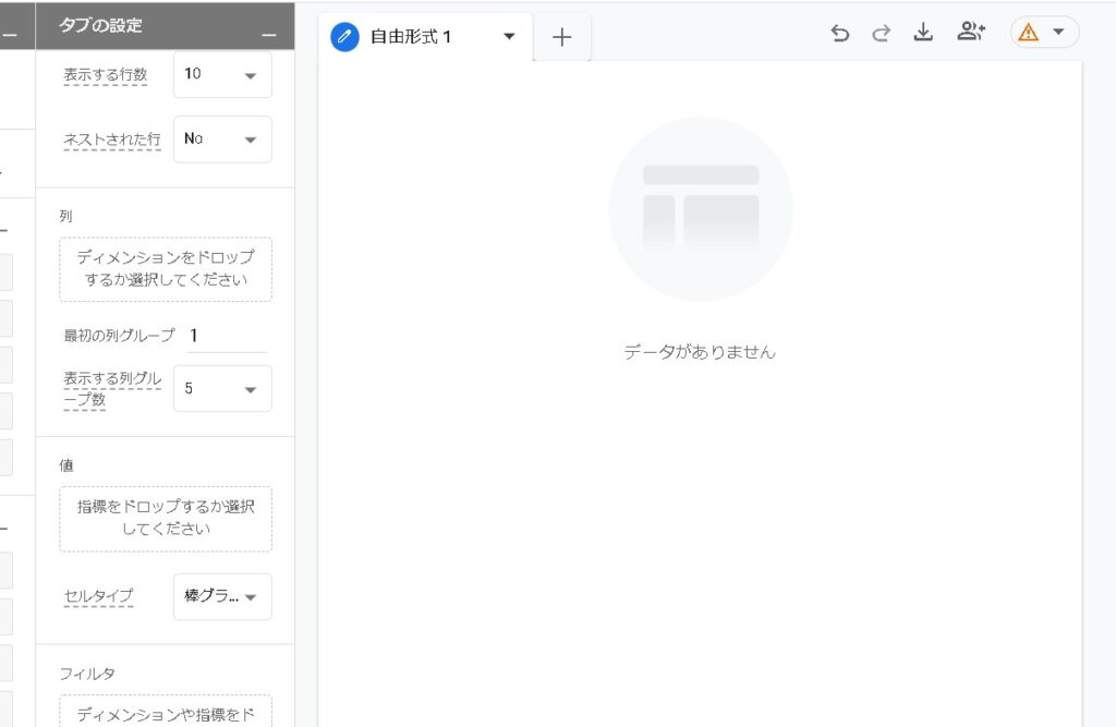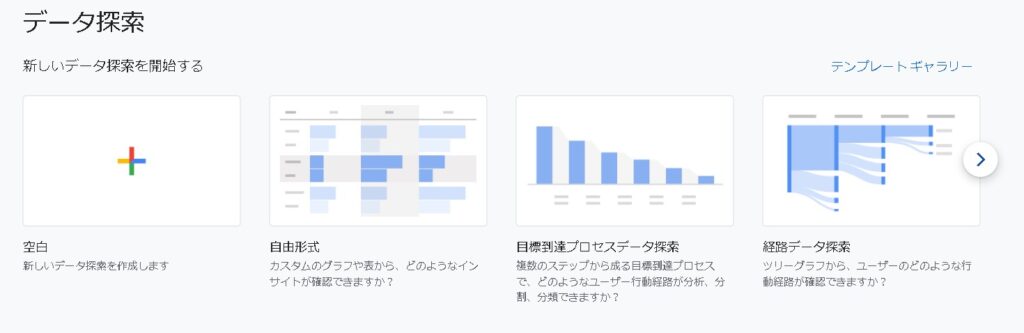 まずは、「探索」>「データ探索」を開きます。「自由形式」を選択します。