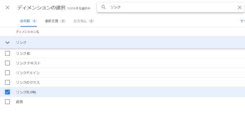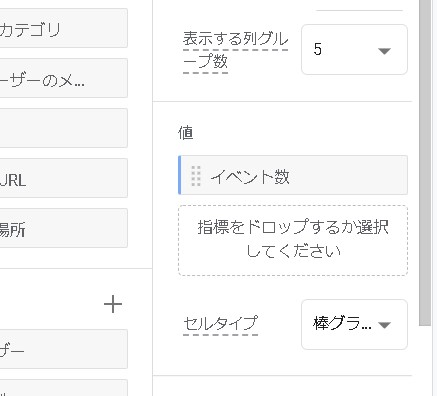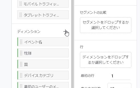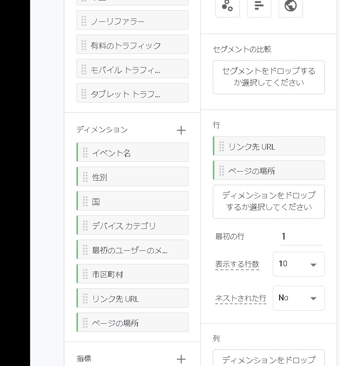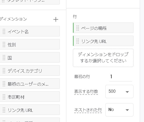 追加したディメンション「リンク先URL」「ページの場所」を追加します。