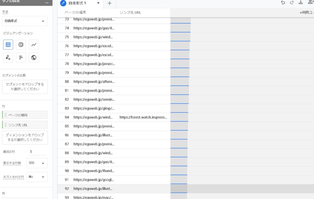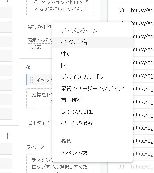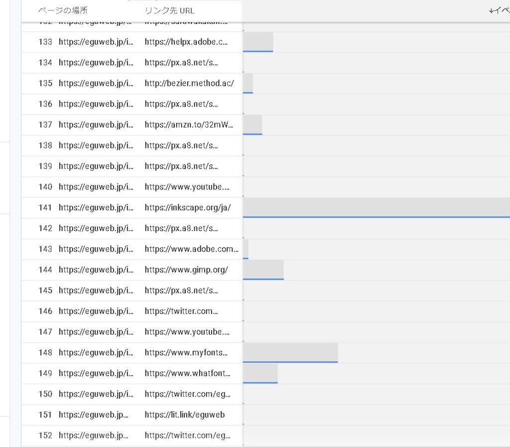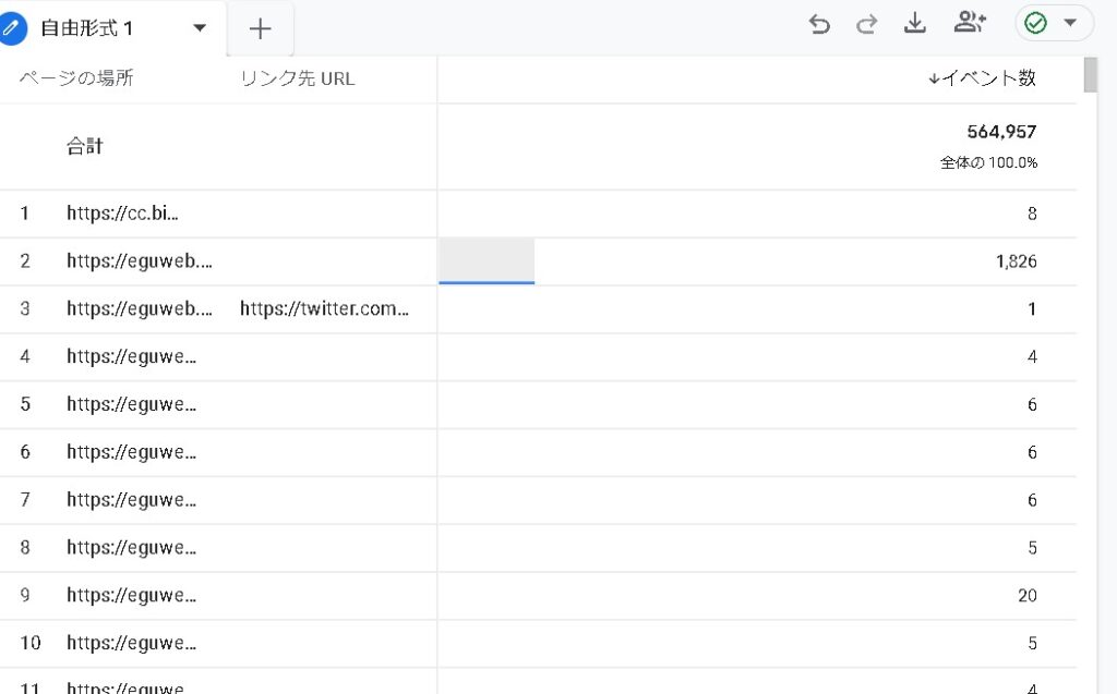 これで、ページごとのクリックイベント数とリンク先のURLが表示されました!!