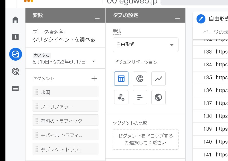あとは、後で分かるようにデータ探索名は「クリックイベントを調べる」など設定しておきましょう。