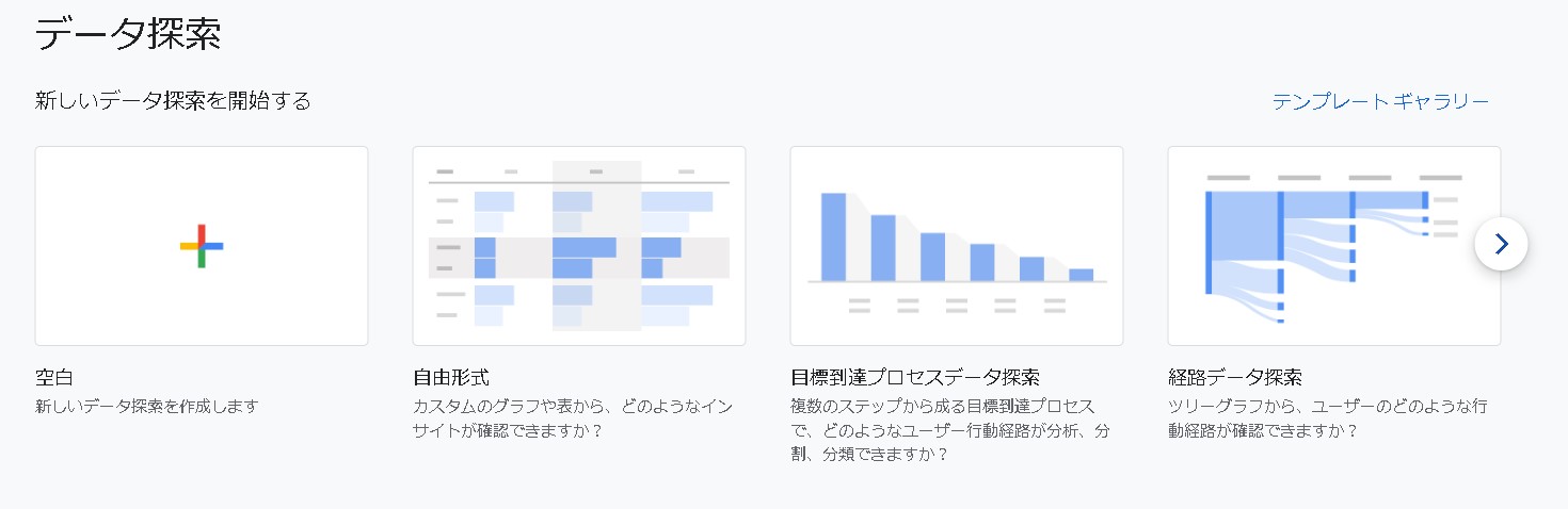 まずは、「探索」>「データ探索」を開きます。「自由形式」を選択します。