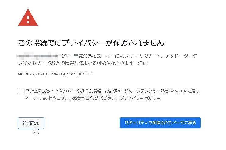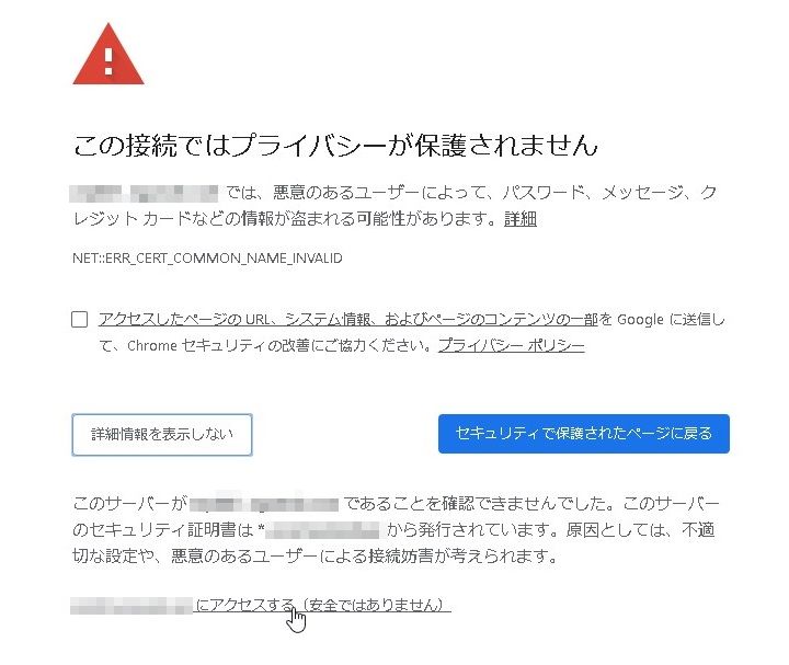 GoogleChromeで「この接続ではプライバシーが保護されません」と表示される
