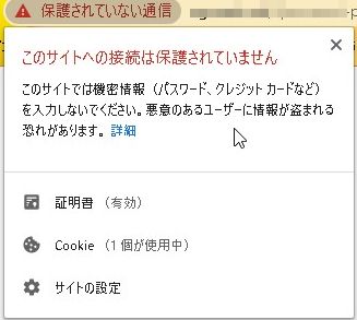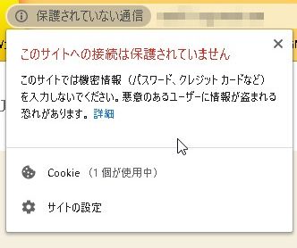 Chrome の最新バージョン(68)から、HTTP ページにアクセスすると、「保護されていません」という通知が新たに表示されるようになります。
