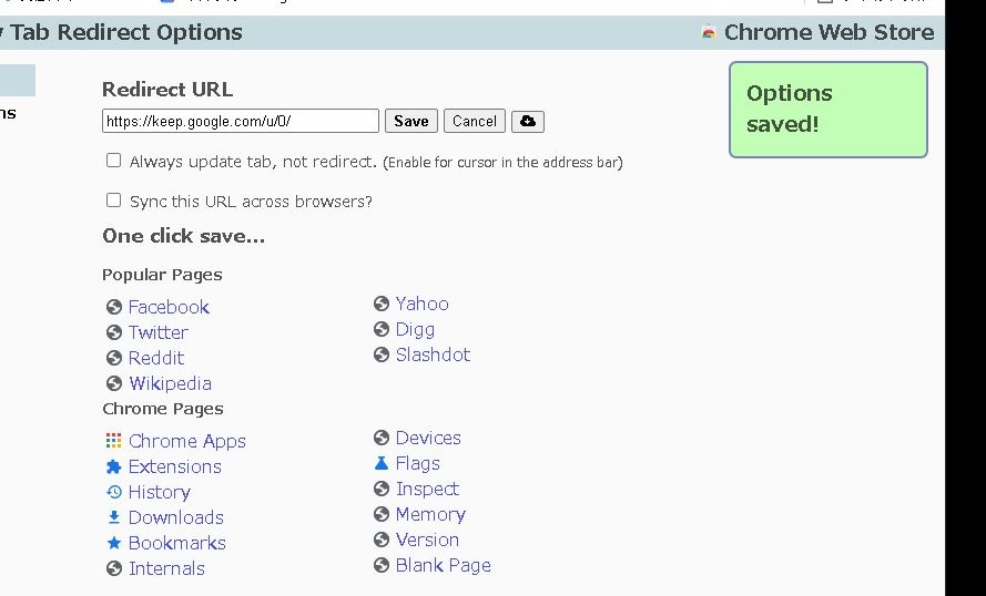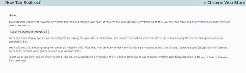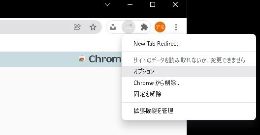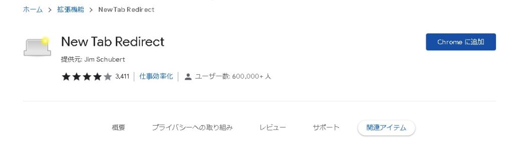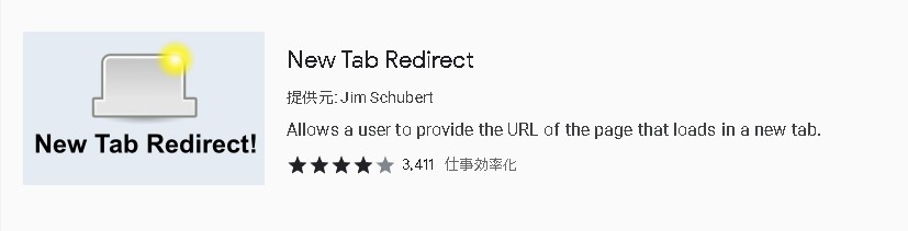 「New Tab Redirect」は、その名の通り「GoogleChromeで新しいタブを開いた時に特定のページを開くようにする」拡張機能です。
