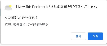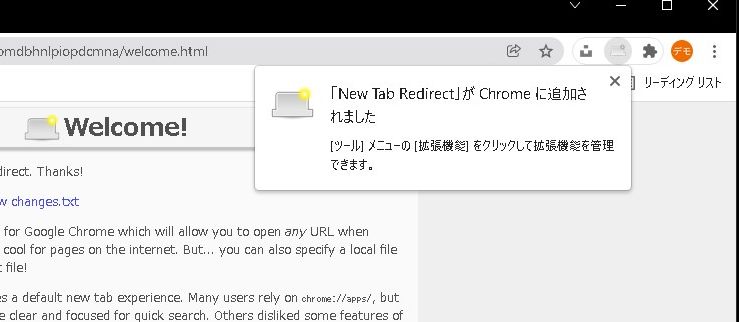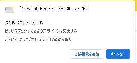 追加すると 「New Tab Redirect」 がChromeに追加されました、と表示されます。