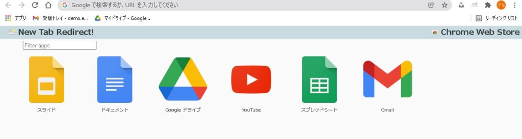 これで、新しいタブを開くとChromeのアプリショートカットが開くようになりました。