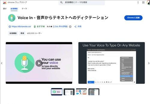 まずはChromeウェブストアからVoice Inの拡張機能を追加します。