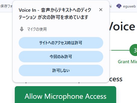 Voice Inが音声を認識するためには、マイクへのアクセス許可が必要です。