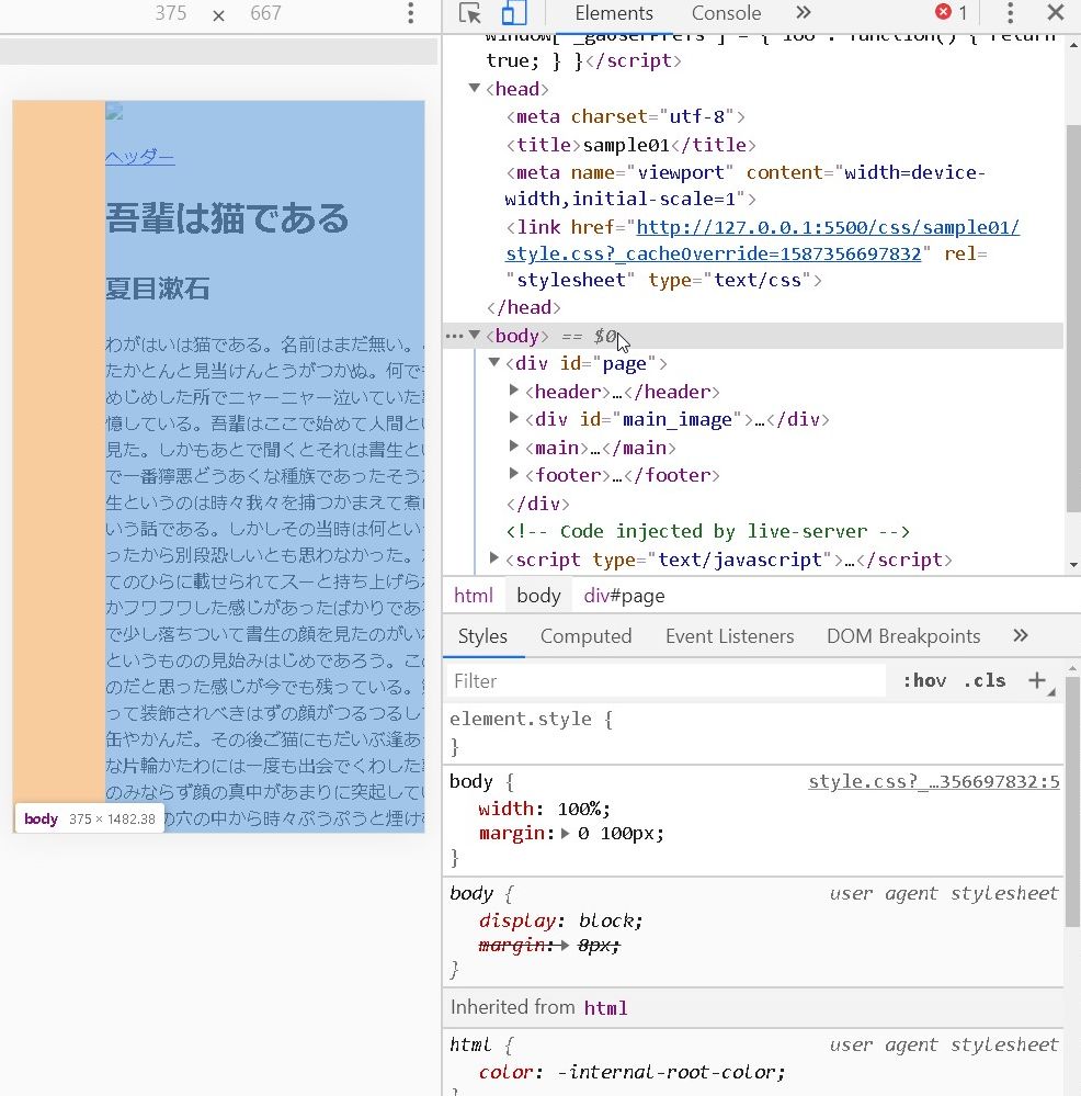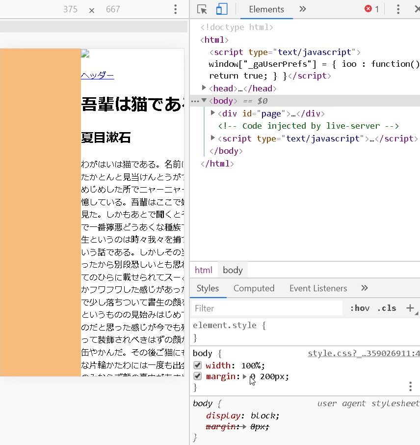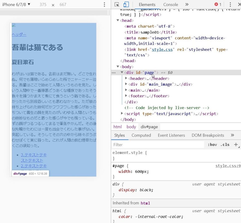 例えば、Phone6/7/8が375となっていますが、bodyがwidth:100%だったとしても、全体や横幅を囲んだ何かの要素が600pxとなっていたら、横幅をはみ出すので横にスクロールできてしまいます。