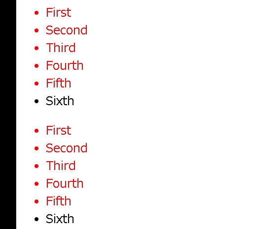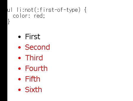 よく見るパターンです。:first-of-typeを指定することで「最初の要素」として、notを使うことで「最初の要素以外」と、指定。