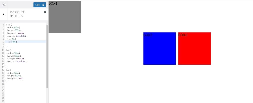 position:absoluteを指定しただけでは、何も変化は起こりません。最終的な位置は top, right, bottom, left の値によって決定されるためです。