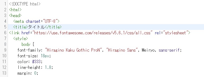 まずは、Font Awesomeを使えるようにCDN(コンテンツ・デリバリー・ネットワーク)でインポートします。