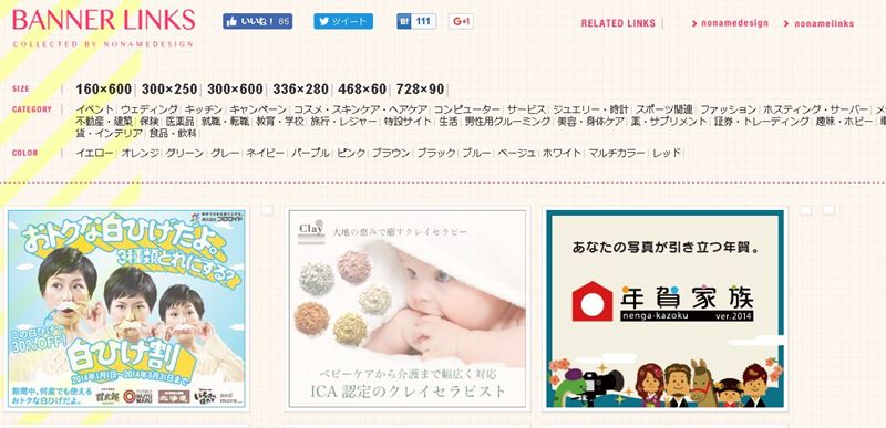 バナーリンク集です。サイズ別、カテゴリー別に優れたデザインのバナーが集まっています。