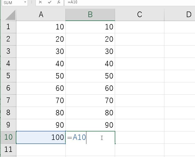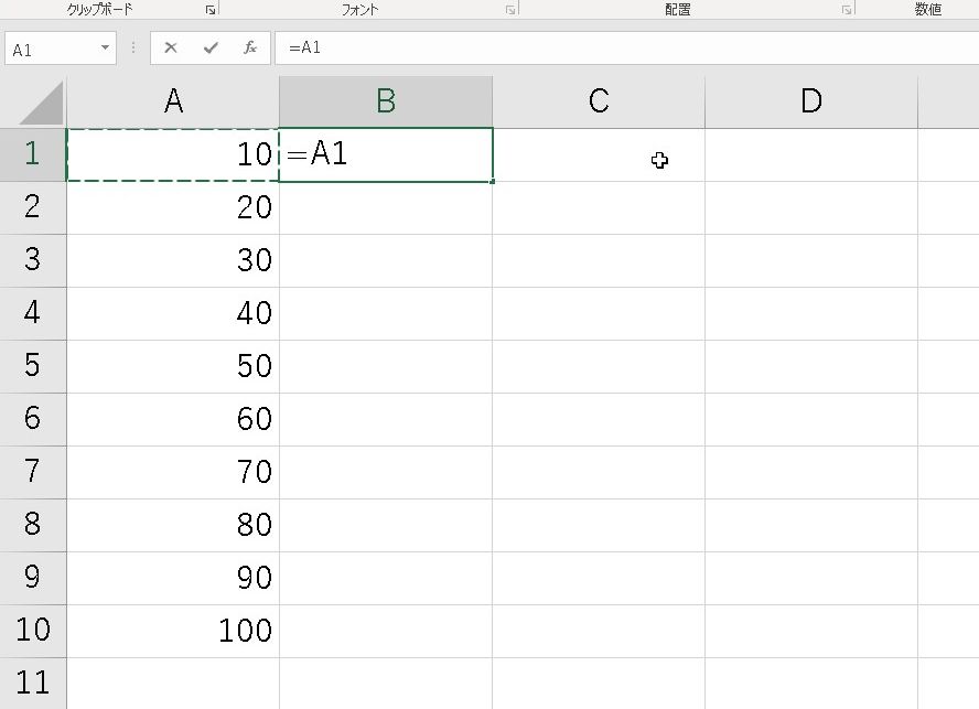 オートフィルで完成です。各セルが左のセルの値を参照しています。