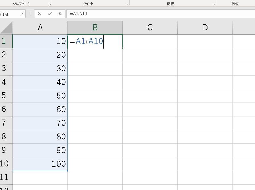 範囲内に何かデータが入ってしまうと結果が表示出来ないのでエラーになってしまいます。