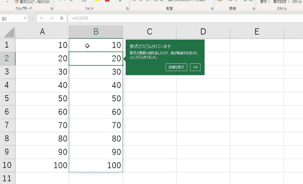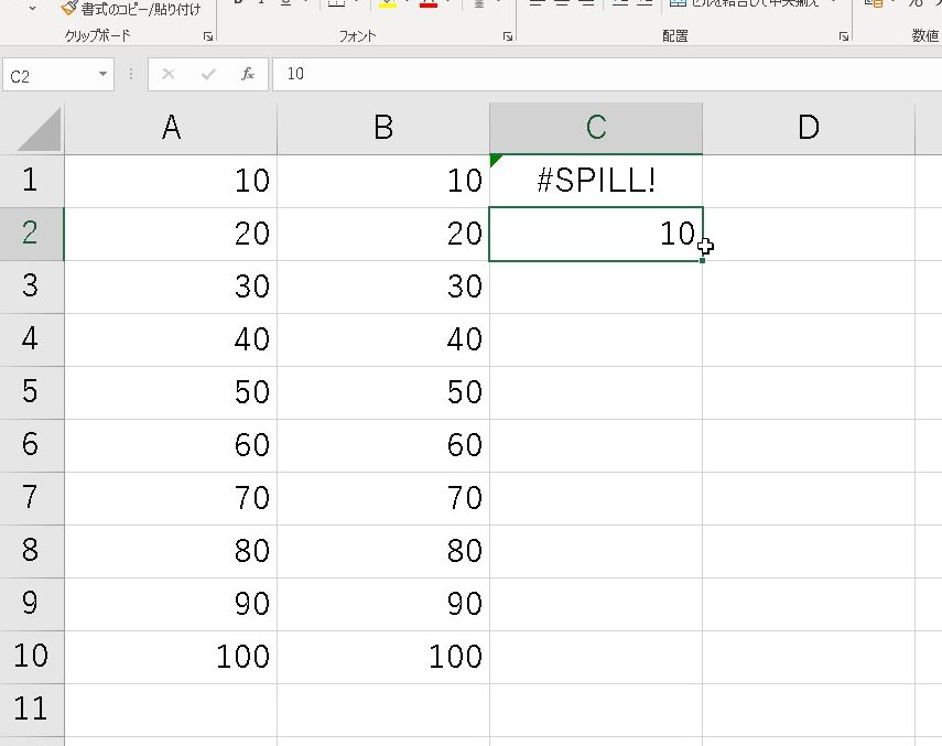 スピルを上手く使うと、列に計算結果を一気に表示したい時などに便利です。