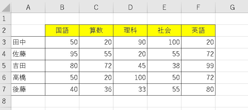 今回は、成績一覧表から一番成績の高い点数を「MAX関数」で抽出する方法です。