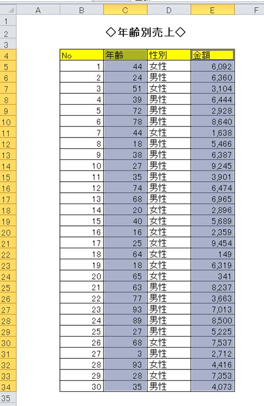 年齢の幅を10単位に変更します