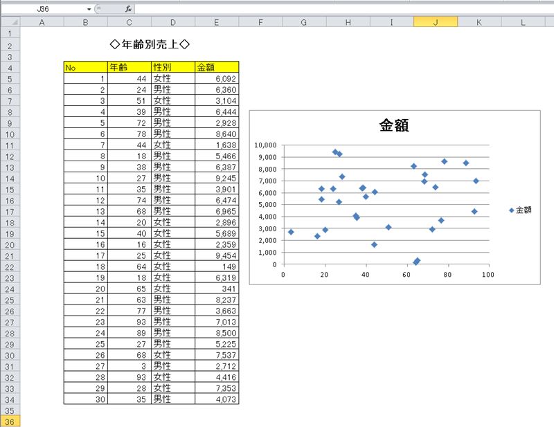 「挿入」→「散布図」