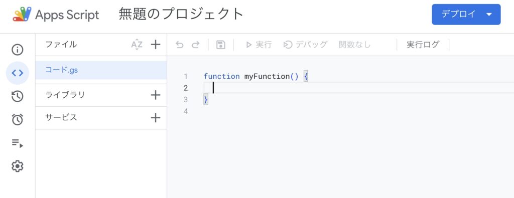 以下のサンプルコードをスクリプトエディタに貼り付けます。