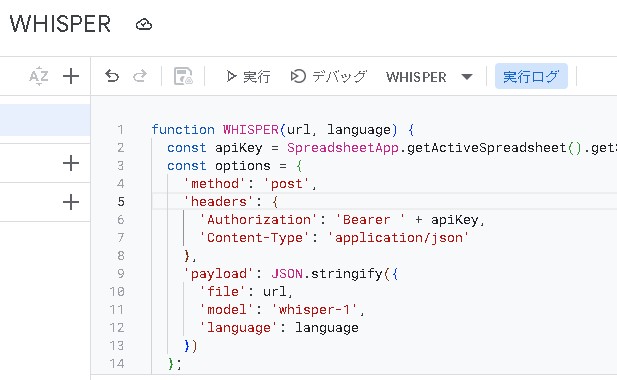 Google Sheets 上でカスタム関数を作成し、OpenAI の Whisper API を呼び出すことができます。