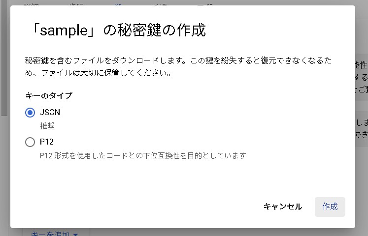 c. JSONキーファイルをダウンロードし、Colaboratoryにアップロードします。