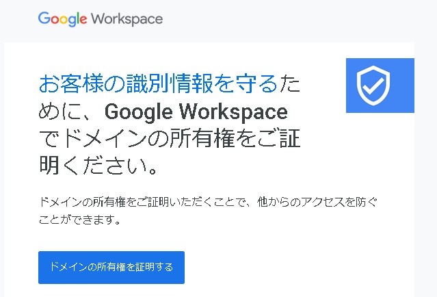 Google Workspaceを使用するためには、この「ドメイン所有権の証明」が必要になります。