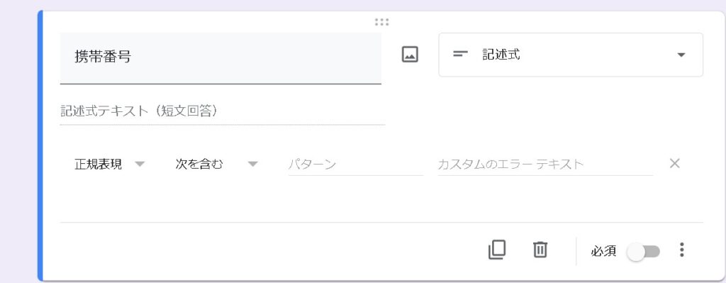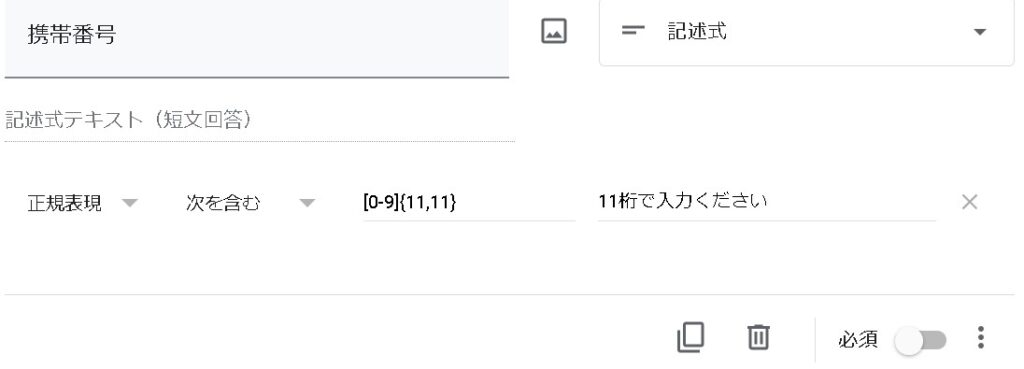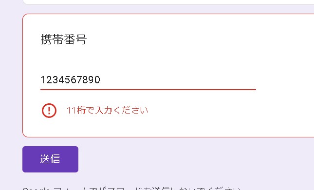 例えば、Googleフォームで「携帯番号の項目で携帯番号のみに入力を制限したい」という場合もあるかと思います。