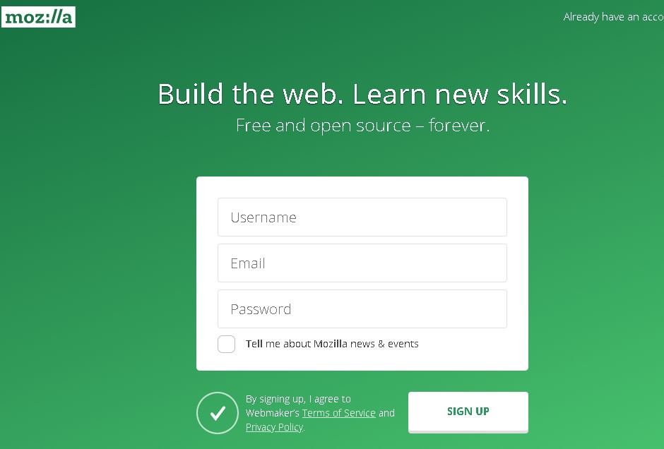 ユーザー名・メールアドレス・パスワードを設定して、すぐにアカウントの利用を開始することが出来ます。