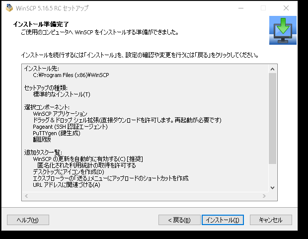 インストールを押します。