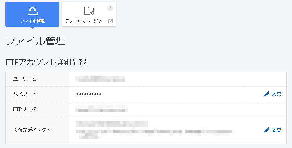 「ホスト名」「ユーザ名」「パスワード」をレンタルサーバーの管理画面から入手します。