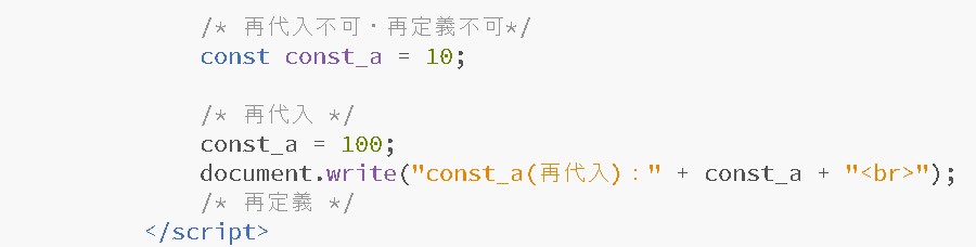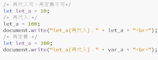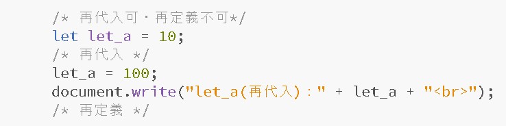 こちらは「再代入可・再定義不可」(やや厳しめ)