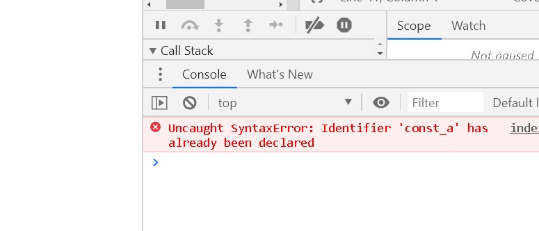 Uncaught SyntaxError: Identifier ‘const_a’ has already been declared