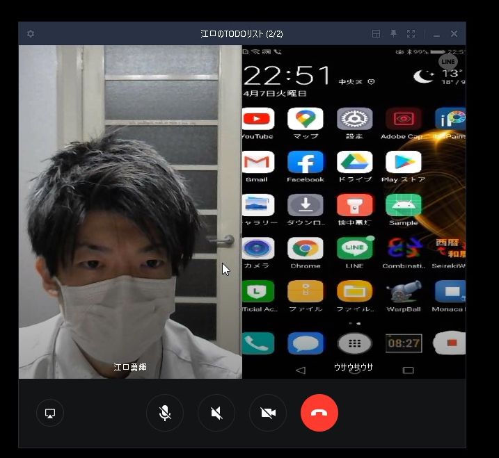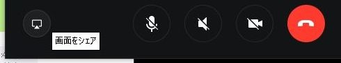 左下の「画面をシェア」ボタンを押すと、相手にこちらのPCの画面を共有できます。