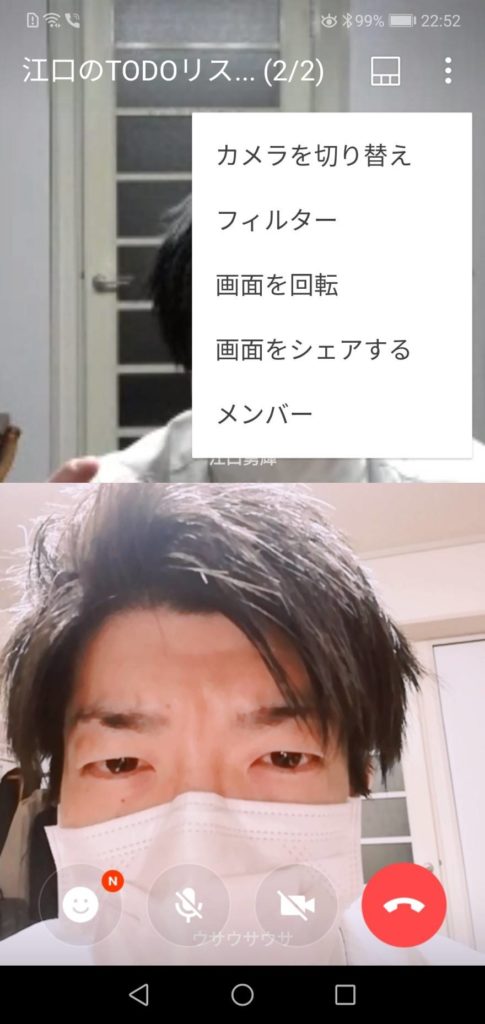 ビデオアイコンをクリックすると、ビデオ通話が開始されます。