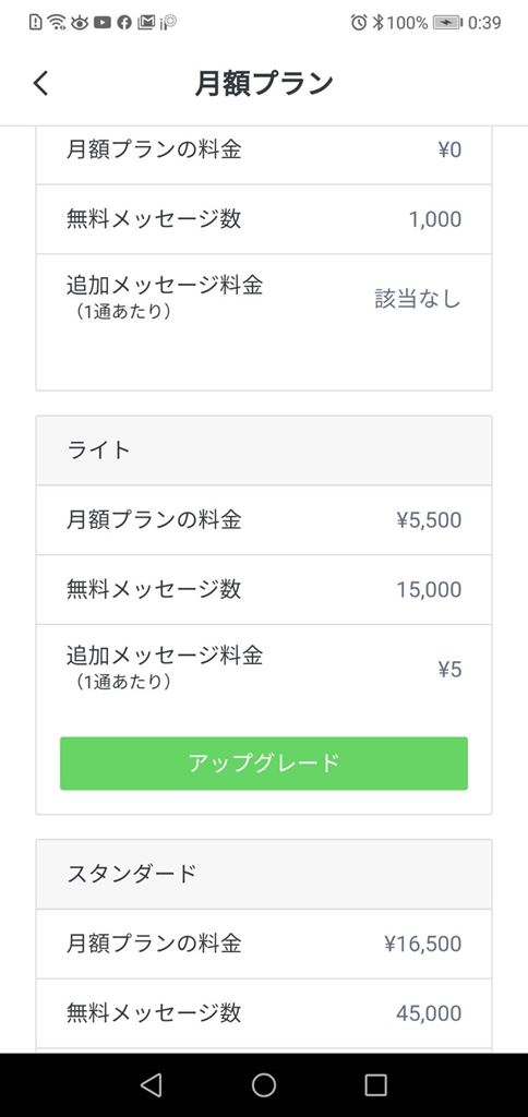 どうやら、LINE Official Accountアプリでプランを変更できるのは「Androidアプリ」のみのようです。なぜ・・・?
