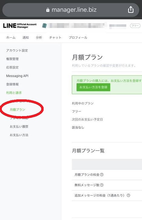 iPhoneの「LINE Official Account」アプリで、フリープランから有料プランに切り替えようと思った時・・・