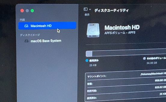 macOS 復旧システムのメニューが表示されますので「ディスクユーティリティ」を起動します。
