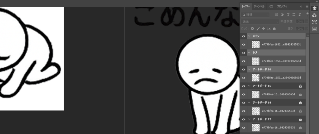 レイヤーパネルから対象アートボードをクリックします。